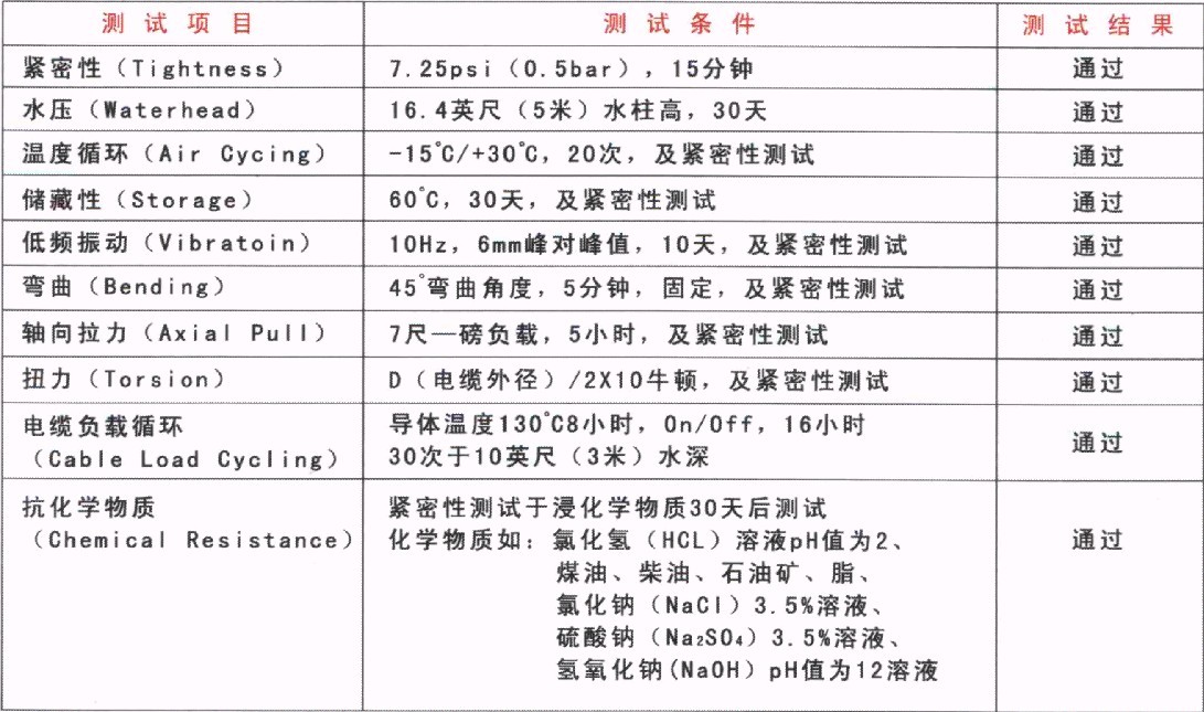 模擬3米水壓和導體溫度高達90℃環境下的老化情況 |