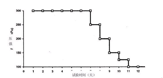 在100KPa內袋壓強下,繼續對樣品進行負荷循環24小時。然后,將管中的水換成空氣。保持管中的氣壓處于30KPa(0.3巴),在100KPa內袋壓強下,再繼續對樣品進行負載循環24小時。
