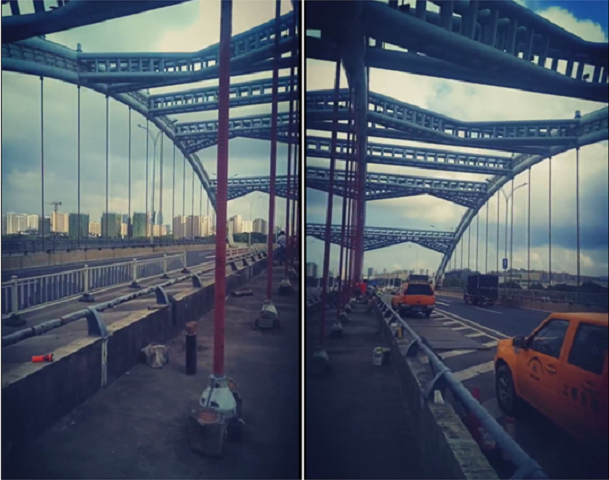 傳統索導管防腐施工方式主要有:一是對索導管內灌注大量發泡劑;二是對索導管內灌注大量防腐油脂。這兩種方式存在的問題主要表現為:一是對發泡劑或防腐油脂的需求量太大,現場施工對材料的搬運和灌注耗時費力;二是隨著環境氣溫變化以及高頻率橋面震動導致的豎吊索振動,造成固化的發泡劑產生開裂滲水或防腐油脂融化滲漏問題。