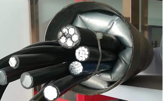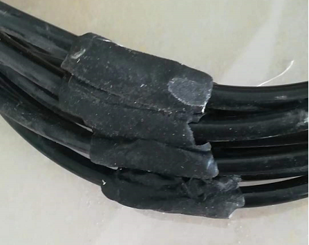 針對五根或更多電纜的夾縫密封方式:對同一段電纜部位的每一根電纜都用防水膠帶包裹一圈,整體呈現(xiàn)圓柱形,朝外一端延伸70mm位置用塑料扎帶扎緊(避免其中一根或幾根出現(xiàn)前后拉伸移動)。