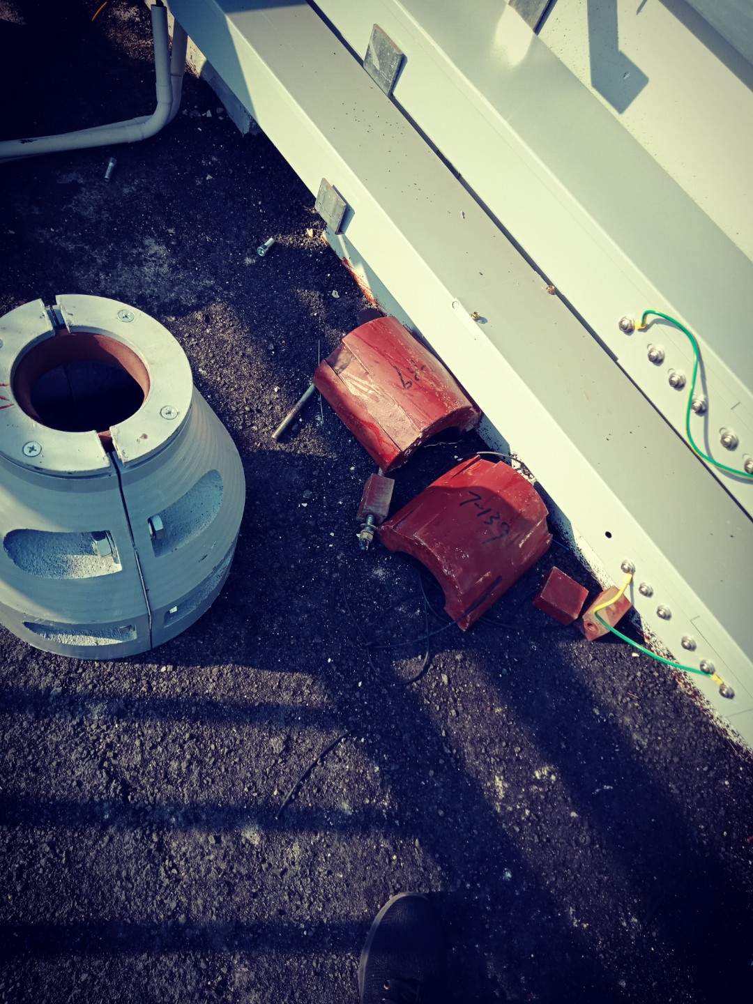 2、第一步,安裝變徑橡膠襯套。先要對橡膠圈外側(cè)中縫凹槽貼緊一圈防水密封膠帶,在圍繞斜拉索放入索導(dǎo)管孔內(nèi),橡膠圈外壁與索導(dǎo)管內(nèi)壁貼緊。再針對纜索偏心情況,用月牙型襯套對較寬的空隙進(jìn)行填補,使得纜索周圍的空隙寬度處于2-4厘米的均勻?qū)挾取a槍τ?層以上材料重疊的,需要使用輔助氣囊的膨脹壓力,使得多層材料之間的夾縫密合嚴(yán)實。