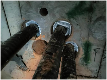 所謂的環形管孔,就是指圓環形態的孔洞。常見的環形孔洞,例如橋梁拉索的索導管孔、電纜管道孔、消防管道穿墻管孔、大小套管的間隔孔。環形管孔的主要特點就是孔內物體位置偏心導致的空隙寬度出現一邊縫隙寬,對面另一邊的縫隙窄。那針對這種情況,用什么材料進行密封,效果比較好?