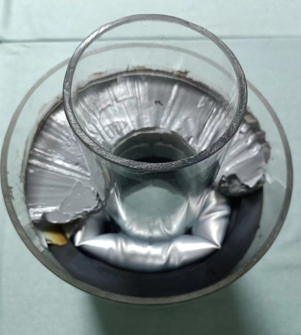 4. 覆蓋防腐密封膠。在密封氣囊個變徑橡膠襯套外表面,覆蓋一層防腐密封膠,覆蓋厚度20mm左右。此層材料的主要是對密封氣囊的保護,同時也是起到多一層防護的作用。