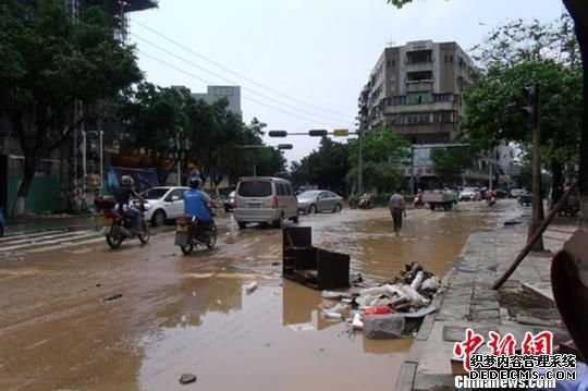 圖為被洪水肆虐后街道一片狼藉,滿街垃圾還沒來得及清理,洪水浸泡了多個變壓器和居民房子的電路至大面積停電。