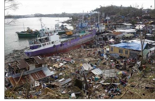 新華社發(fā) 11月10日,在菲律賓萊特島,“海燕”過后,一艘輪船被沖上岸。