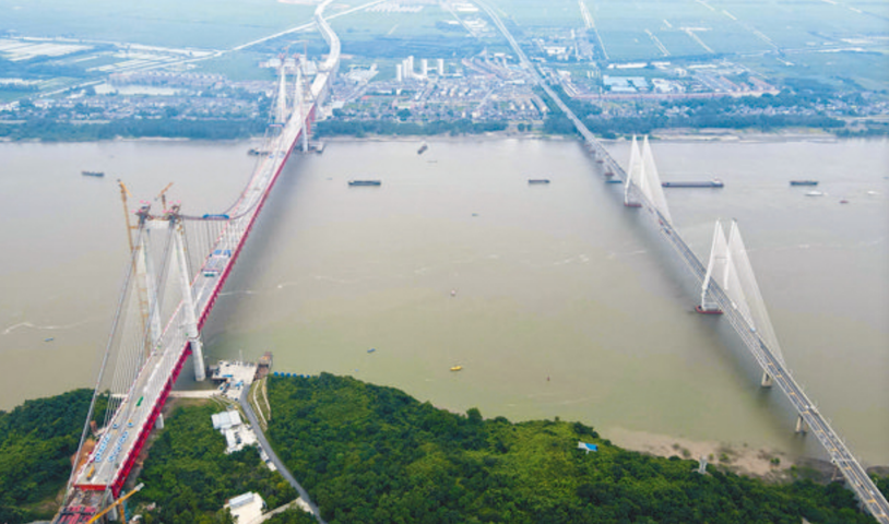 4 月,主橋瀝青鋪裝完成,公路引橋進行瀝青攤鋪作業,計劃 5 月中旬完成全部瀝青攤鋪,6 月完成除銅陵南收費站改造外的全部工程施工。