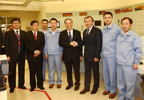 國務院副總理王岐山11日與來華出席中俄能源談判代表工作會晤的俄羅斯副總理謝欽,共同前往中核集團原子能科學研究院參觀了中國實驗快中子反應堆,視察了核島專用廠房和主控室,并聽取了研究院負責人有關情況介紹。
