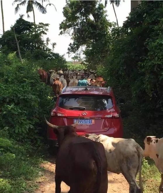 6月,中國能建考察小組赴項目現場進行調研,路遇熱情的牛群